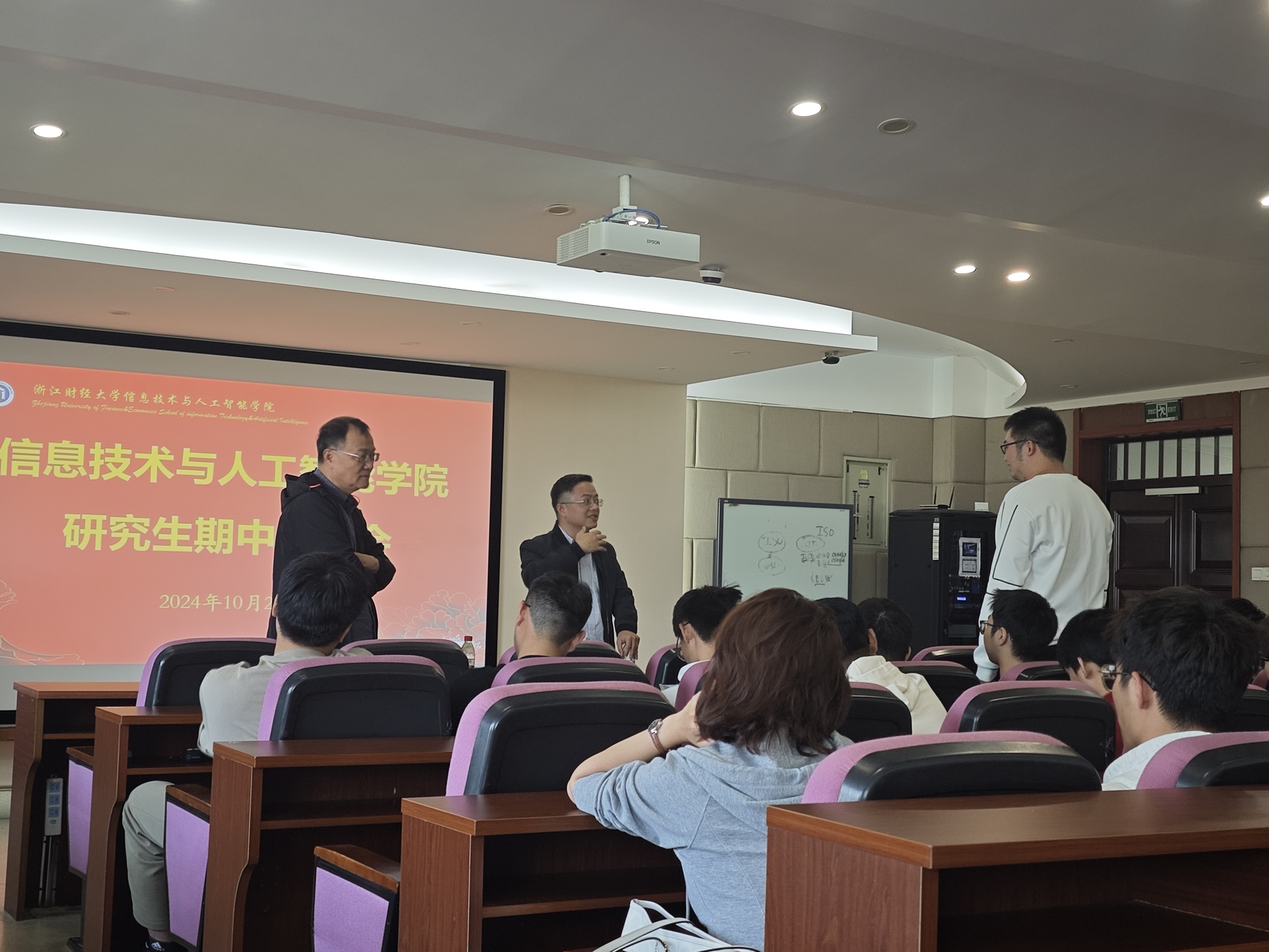 10月24日下午,伟德官网在9302会议室召开了2024-2025学年秋学期研究生期中座谈会。此次会议由学院副院长林剑教授主持,研究生教学督导组姚建荣教授、研究生辅导员吴泽勇、研究生秘书杨天亦及2024级全体硕士生和博士生参加。