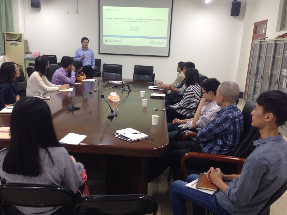 10月9日下午,浙江大学管理学院黄鹂强博士在伟德官网404会议室为全院师生带来一场题为“Bridging Traditional Behavioral Theories and Electronic Commerce Applications: A Case from Regulatory Focus Theory”的学术讲座。信工学院近20余名科研骨干、研究生参加了本次讲座。