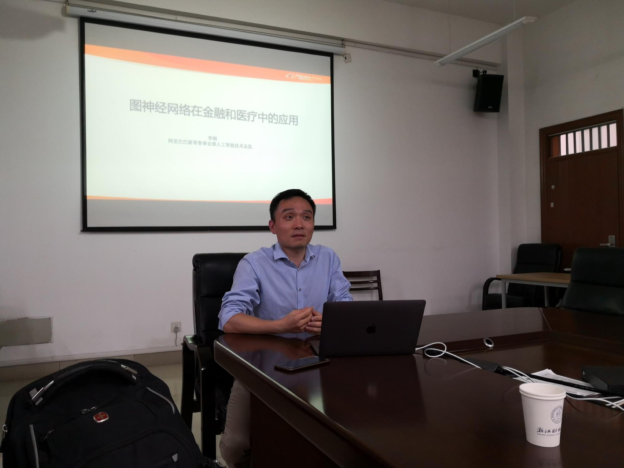 9月29日下午,阿里巴巴新零售事业部人工智能技术总监李朝博士来伟德官网交流,伟德官网张志强和宋海裕两位老师以及20多名硕士和本科同学参加了本次交流活动。