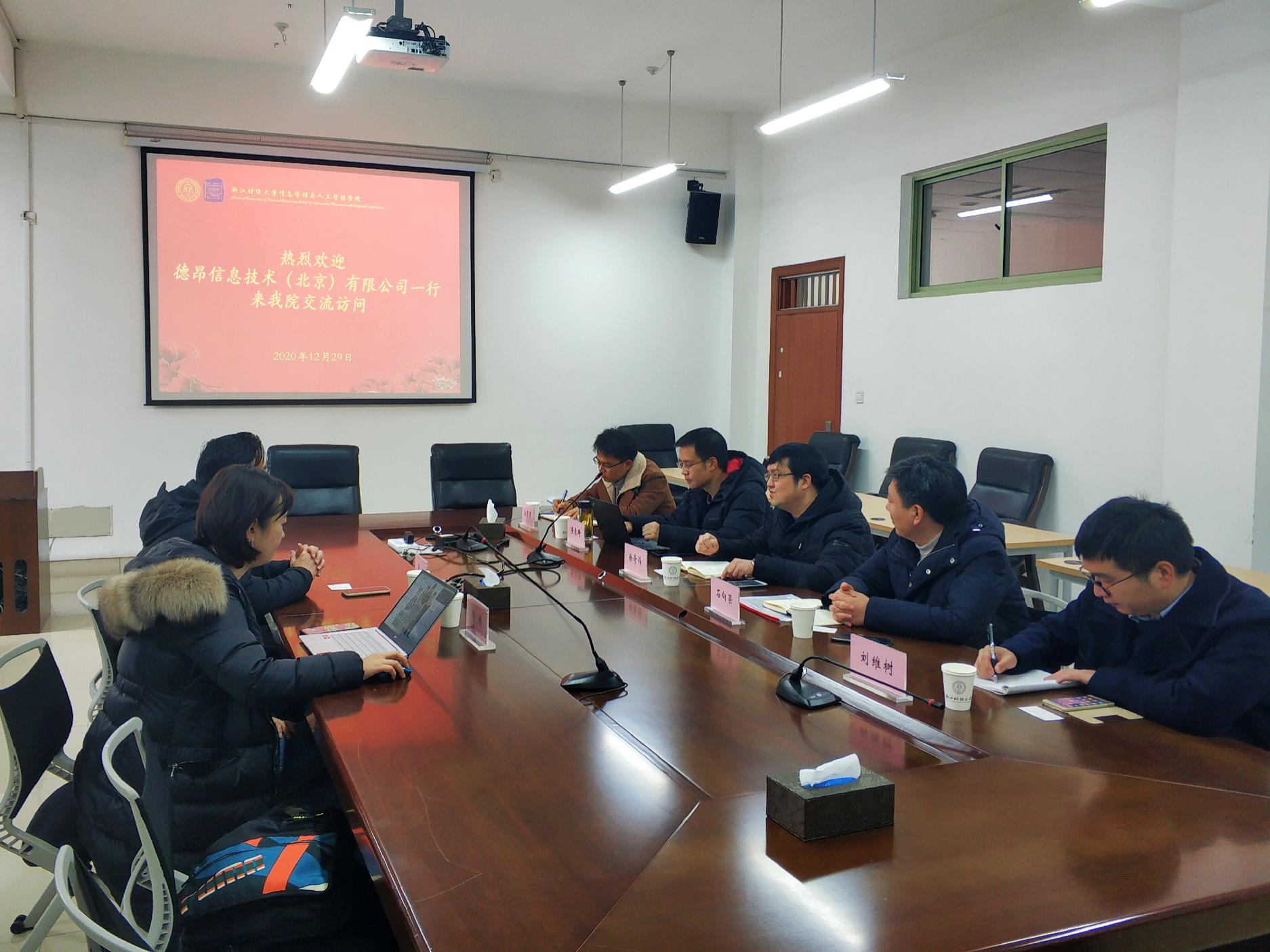 12月29日上午,德昂信息技术(北京)有限公司华东区域销售总监董鹏一行来伟德官网交流并与信息管理系就产学研合作开展深入洽谈。学院党委书记徐奇伟、经管实验中心主任石向荣、信息管理系主任隆清琦以及刘维树、姜罗罗等老师参加了此次洽谈。